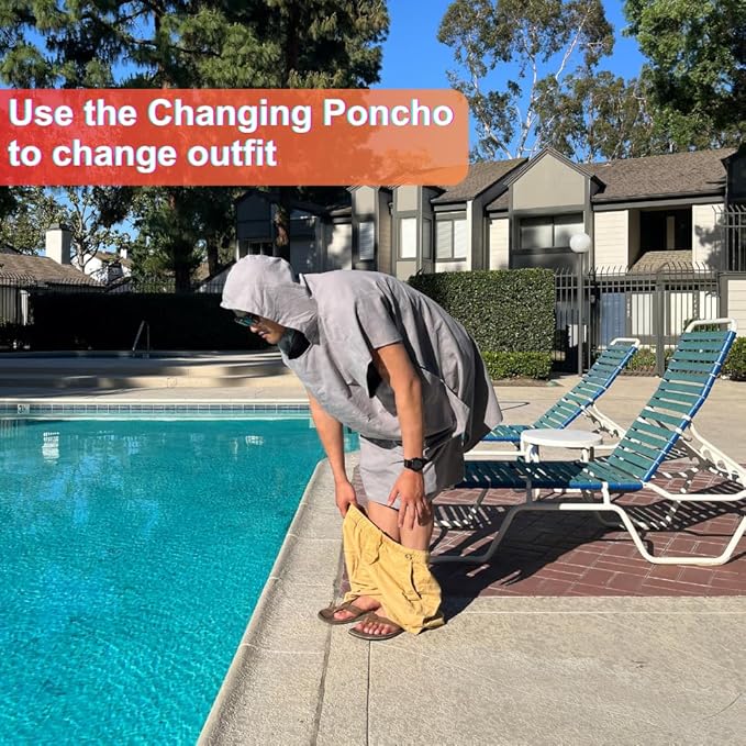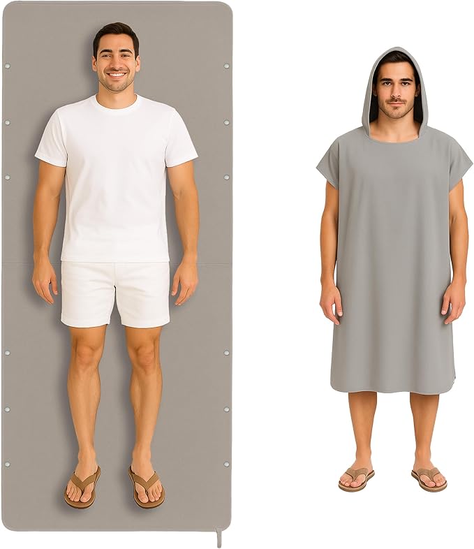 Beach Towel Blanket Changing Robe Surf Poncho for Surfing Swimming Pool Outdoor Camping, Microfiber Quick Dry Towel (Light Gray, Adult)
