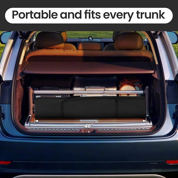 • 【Portable Storage Bag】This instant portable shelter is equipped with a sturdy oxford bag, a carry strap and a zipped opening for quick storage and easy transport. Compact size(46"x8"x8") fits in most car trunks, making it the good partner for outdoor activities