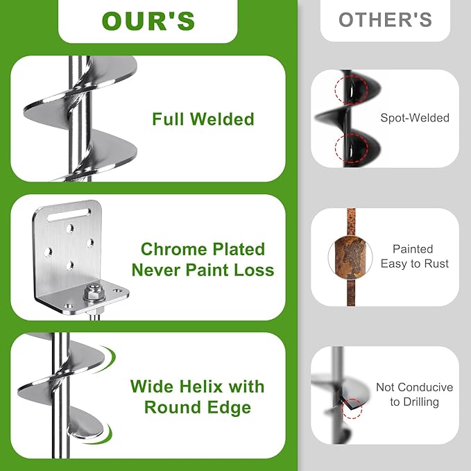 • Fully Welded 20mm Spiral Blade: Different from other common ground anchors, our trampoline anchors spiral blade is fully welded, which is more durable. The earth anchor suitable for many kinds of soil, hard clay, Sandy soil, grass, sand, snow.