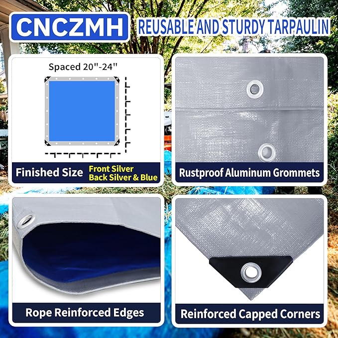 • CNCZMH Tarp: CNCZMH committed to tarps upgrade and innovation. 2 years warranty. CNCZMH tarp is heavier than 5 mil tarp and is recommended for temporary outdoor protection from elements