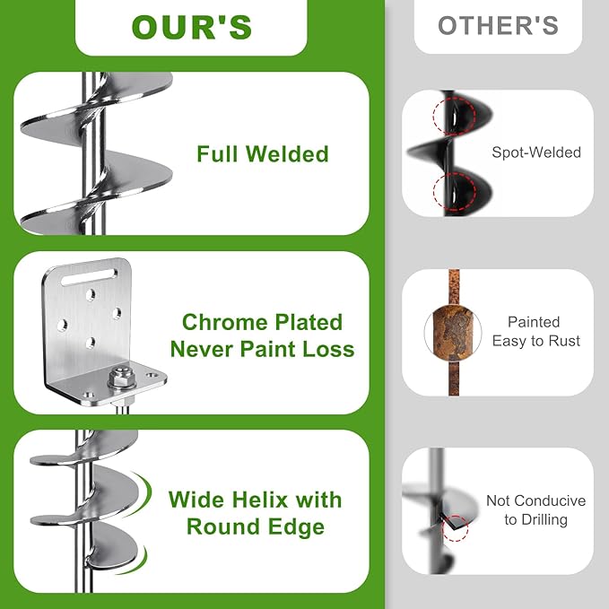 • Fully Welded 2.7" Wide Spiral: Different from other common ground stakes anchor, our 24" earth anchor spiral blade is fully welded, which is more durable. The earth anchor suitable for many kinds of soil, hard clay, Sandy soil, grass, sand, snow.