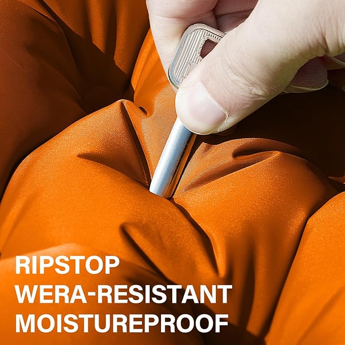 • ADVANCED CAMPING DURABLE MATERIAL: The 2-person camping sleeping pad is made of 40D nylon and TPU coated material, durable, hard-wearing, and no tearing. The camping mattresses are easy to clean, if there is dust or grime, just wipe them down. Designed for harsh outdoor environments, it is your best companion while camping