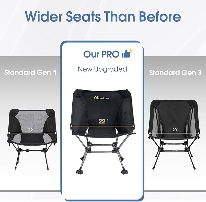 MOON LENCE Portable Camping Chair Plus Size, Folding Backpacking Beach Chair with Groundgrip Feet, Upgraded Comfort & Size, Still Compact and Lightweight for Hiking, 330Lbs Capacity (Black)