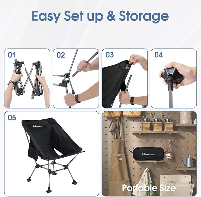 • Lightweight Comfort Anywhere: Compact and easy to carry, this Moon Lence backpacking chair effortlessly accompanies every journey. No tools required—just a few simple steps for quick setup, giving you instant comfort during adventures or urban explorations. Durable yet thoughtfully designed, it's both a reliable outdoor companion and a heartwarming holiday gift