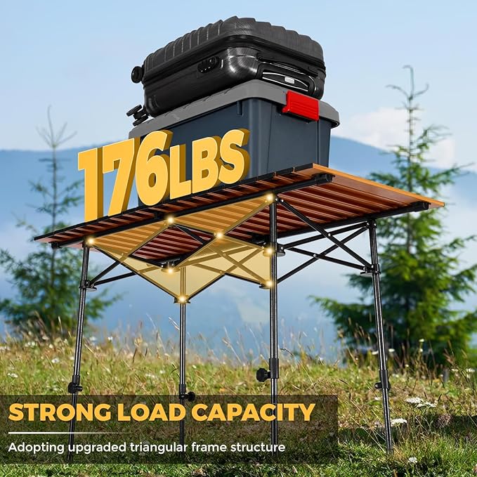 • Military-Grade Aluminum Build: Our aluminum alloy camping table is 30% stronger than standard camping tables yet weighs only 13.3 lbs, rust-proof for years of use.