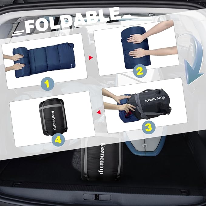 • Larger and Wider: Keencamp sleeping bag measures 74.80*33.07 inches, with a package size of 16.53*13.38*5.51 inches, weight 6.72lbs. The oversized sleeping bag for adults of 6 feet in tall, to provide enough space and even allow XXL individuals to move freely.