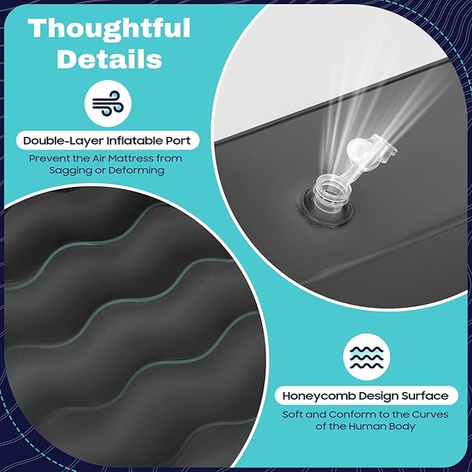 • 【Comfortable Experience】: The velvet-like surface is soft, comfortable, and has good breathability. With three-dimensional support, it can ideally fit your body curves, making it the ideal choice for camping or road travel.