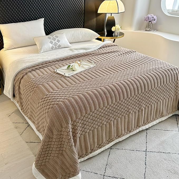 • Unique Design:coral fleece Jacquard face and sherpa fleece reverse with a striped design offer you a softer touch. Snuggling on your couch or bed with our blankets to enjoy happy hours. Different colors meet your needs.
