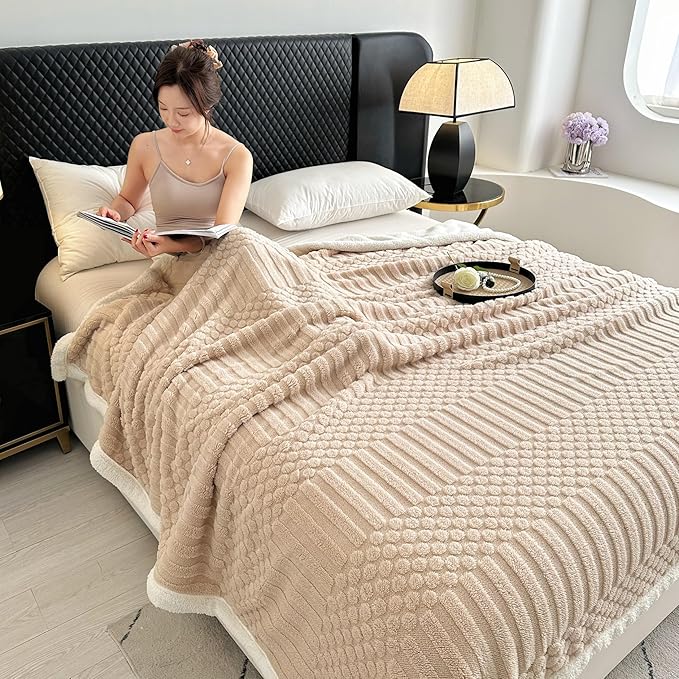 • Unique Design:coral fleece Jacquard face and sherpa fleece reverse with a striped design offer you a softer touch. Snuggling on your couch or bed with our blankets to enjoy happy hours. Different colors meet your needs.