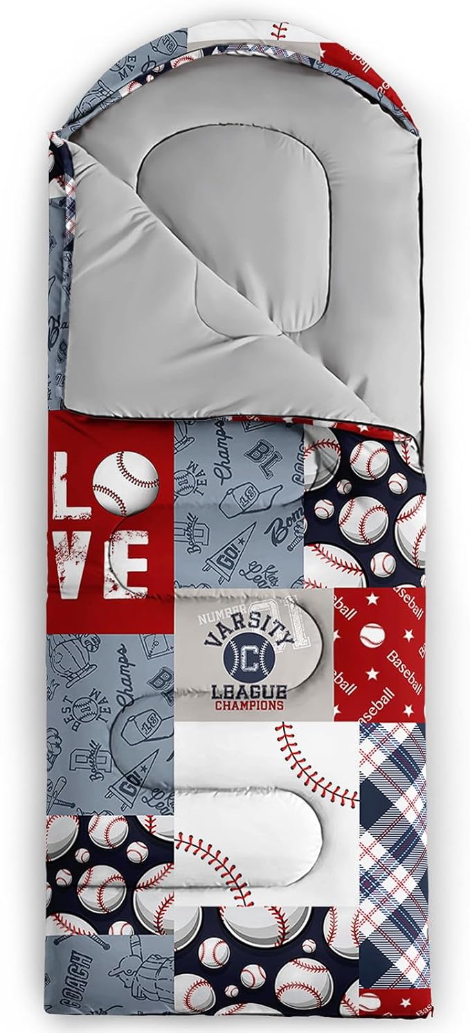 • SUITABLE:The sleeping bag can be used for 3 Seasons.SIZE:90.5"L x 31.5"W Suggenal extreme temperature: 41 ℉ -77 ℉.Applicable in a variety of scenarios,such as Travel camping pajamas party,It's very suitable for you to travel with your children.Half-circle hood with adjustable drawstring,which can keep you warm and prevent your humidity