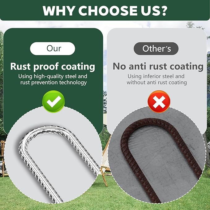 • Wide Applications: Versatile and reliable, our lawn stakes are perfect for a variety of outdoor projects. Whether you're securing tents, tarps, or landscape fabric, trust in their reliability and versatility for all your anchoring needs