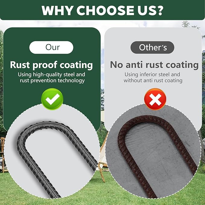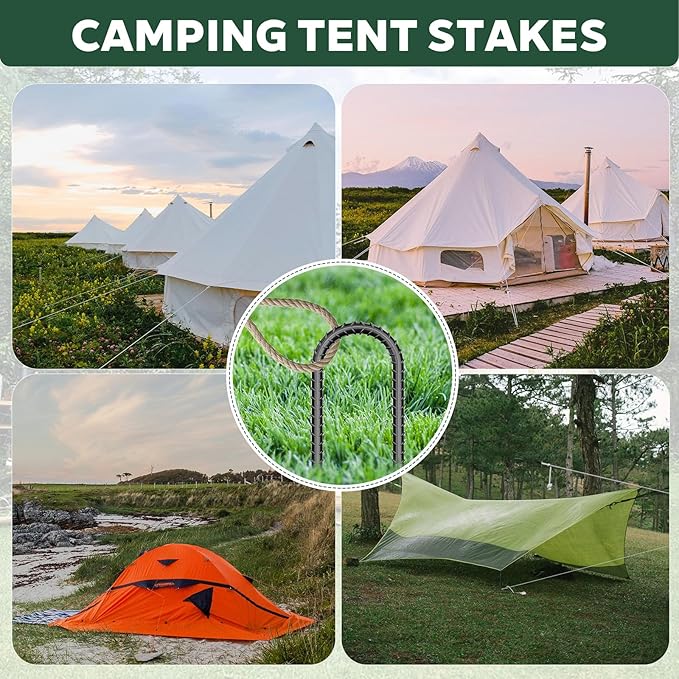 • Stability: No more struggling with flimsy stakes! Our rebar stakes 16 inch feature a unique spiral design, providing maximum grip and stability in various terrains. Whether it's sandy beaches or rocky grounds, these stakes are up for any adventure