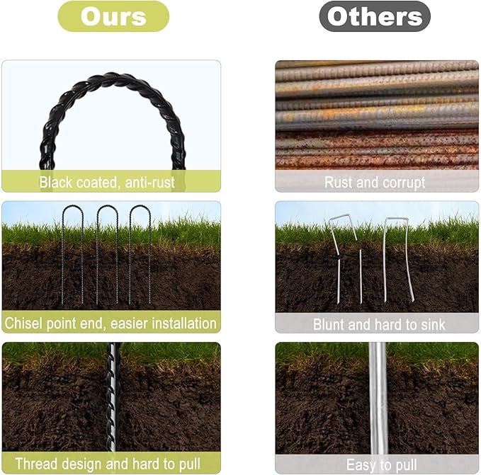 • Thread Design: The trampoline stakes threaded design of the pile surface combined with the stability of the U-shaped shape gives the anchor stronger grip, making your gardening or outdoor activities not afraid of extreme weather