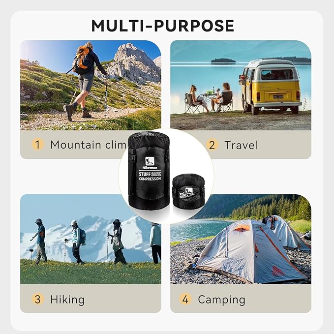 • 【SAVE 50% MORE SPACE】Our compression stuff sack is an incredibly simple and practical solution to space-saving, they will give you more space to pack what you need and give you an unprecedented portable experience