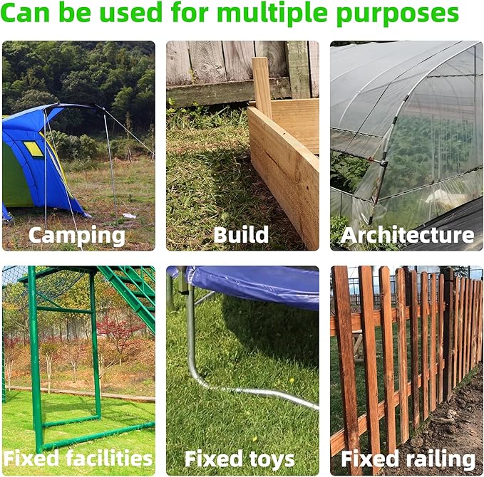 • MULTIPURPOSE USE : In addition to supporting plants, they can also be used for securing garden structures, landscape trimmings,fencing, sports nets, trampolines, irrigation pipes, yard decorations, tents, and canopies.