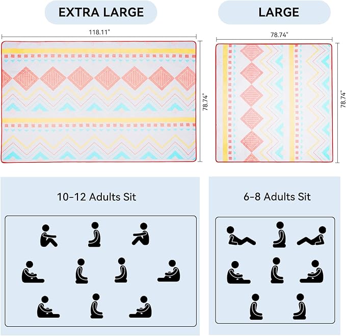 • 🧺[Perfect for Gatherings & Outdoors] This picnic blanket is designed for family reunions, BBQs, park picnics, and beach hangouts. Choose 78.74"x78.74" for 6–8 people or 78.74"x118.11" for 10–12. A large lawn blanket with plenty of space for everyone to relax and enjoy.