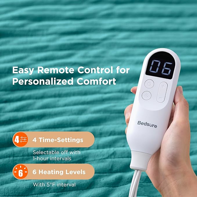• Customizable Warmth: Featuring fast and consistent heating, this heated throw blanket offers 6 heating levels and 4 time‑settings for customizable coziness.Powered by advanced heating‑wire technology, it can precisely control temperature, ensuring safer warmth.Undergoes multiple rounds of rigorous testing and proudly carries the Good Housekeeping Seal for proven quality and innovation