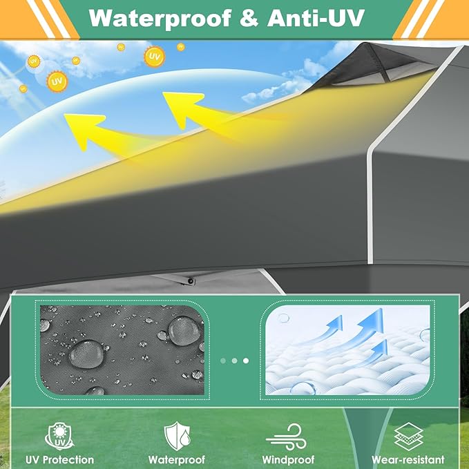 • 【Professional-Grade Protection】 The 10x30 pop up canopy features heavy duty 420D tear-stop polyester with 2000mm water resistance and 99% UV protection. For safety and longevity, not recommended for use in severe weather conditions.