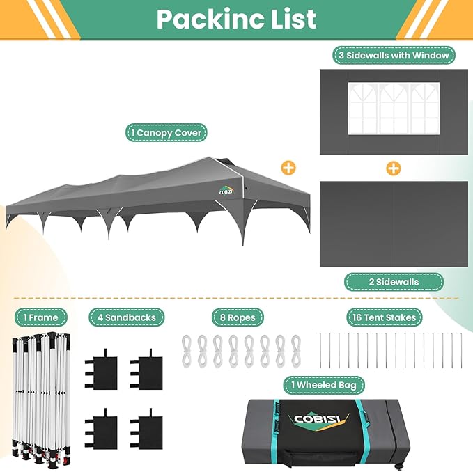 • 【Enhanced Mobility & Service】 Complete package includes heavy-duty frame, canopy roof, 5 sidewalls, 4 sandbags, 8 ropes, 16 stakes and premium wheeled roller bag with reinforced handles. One-year warranty on all components with dedicated customer support.