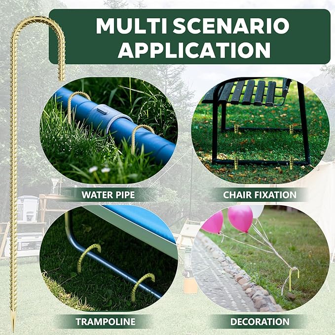 • Wide Applications: Versatile and reliable, our lawn stakes are perfect for a variety of outdoor projects. Whether you're securing tents, tarps, or landscape fabric, trust in their reliability and versatility for all your anchoring needs