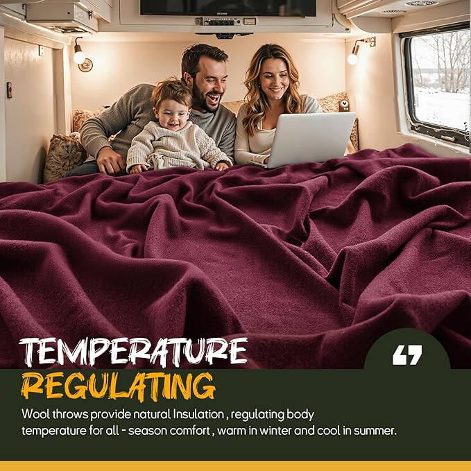 Merino Wool Blend Camping Blanket Ultra Warm, Moisture Wicking, Portable Outdoor Blanket for Camping, RV Trips, Adventures, Picnic, Bushcraft Survival Kits, Large 86"x62"