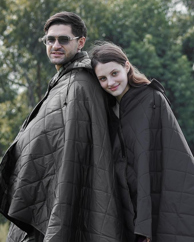 • βœ… π—Ÿπ—”π—₯π—šπ—˜ π—¦π—§π—”π——π—œπ—¨π—  π—•π—Ÿπ—”π—‘π—žπ—˜π—§ π—ͺπ—œπ—§π—› π—›π—’π—’π——π—˜π—— π——π—˜π—¦π—œπ—šπ—‘ - This large outdoor waterproof blanket measures 79 x 58 inches (similar to a Queen Size Mattress) is large enough to wrap up to 2 adults or provides seating for 3-4 adults when placed on the ground. Its foldable hood offers head-to-toe coverage and easily transforms into a poncho on rainy days. Equipped with 2 hook&loop fasteners, you can wear it without using hands.