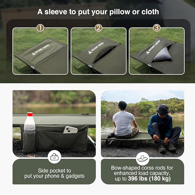 ONETIGRIS SUPRAGRIS Camping Cot, Support Up to 400lbs, Lightweight Comfortable Folding Bed for Camping, Hiking, Backpacking, Travel, Car Trips, Office Nap (Ranger Green)
