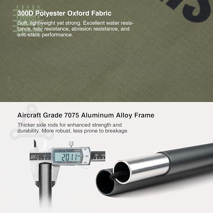 • โ˜… ๐™‡๐™ž๐™œ๐™๐™ฉ๐™ฌ๐™š๐™ž๐™œ๐™๐™ฉ & ๐˜ฟ๐™ช๐™ง๐™–๐™—๐™ก๐™š - Crafted from heavy-duty 7075 aluminum alloy, the cot is ultra-light (5.7lbs/ 2.6kg) but can support up to 396lbs (180kg) of weight, a comfortable sleeping bed for large campers
