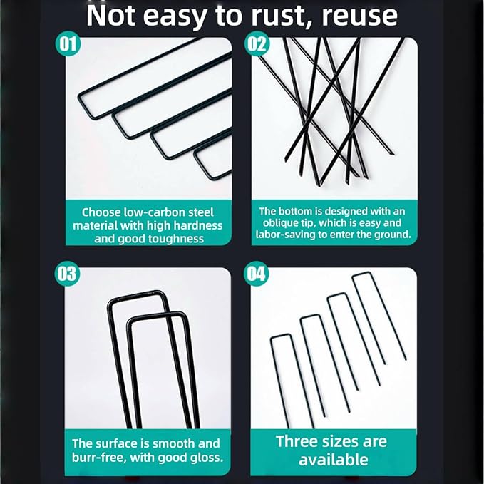 • Multi Purpose Use: Suitable for securing you garden landscape fabric, garden hose, Christmas lights stakes, yard, garden, lawn, tent.. Help you to fix edging, plant roots, weed barrier landscape fabric or plastic, fences, hoses to keep your garden clean and tidy.