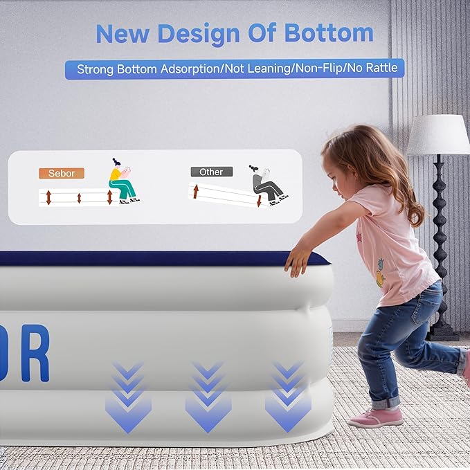 • Stable & Quiet Design: Featuring a non-slip bottom design, the Sebor air mattress ensures maximum stability, preventing tipping and reducing noise. This stable and quiet design allows you to enjoy a peaceful and undisturbed sleep, whether you're at home or in a tent, making it a perfect addition to any sleeping arrangement.