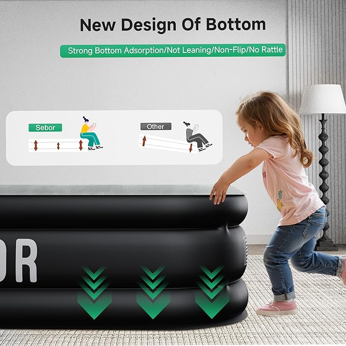 • Comfortable Top Material: The top of the Sebor air mattress Queen with built in pump is crafted from a soft, plush material with a velvet-like finish, providing a luxurious and comfortable sleeping surface. This premium design ensures a cozy sleep experience, making it perfect for overnight guests or outdoor adventures, giving you the feeling of sleeping on a real bed.