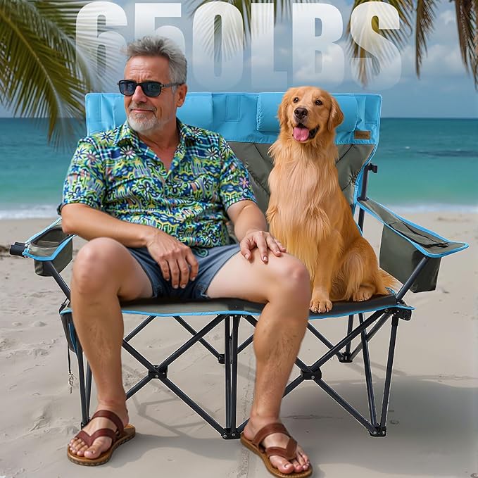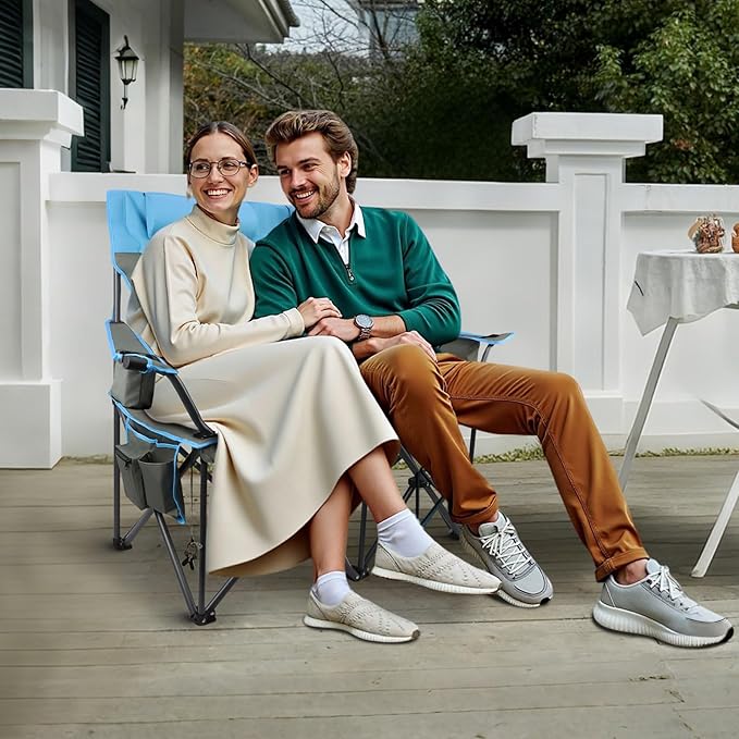 • ✨High Back Support & Oversized Comfort for Adults✨ This high back camping chair is designed as an oversized camping chair and 2 seat folding chair, perfect for adults seeking extra space—ideal for two people to relax without feeling squeezed. As one of the high back camping chairs for adults, its tall backrest eases neck and shoulder strain, while the generous dimensions solidify it as a top choice among oversized camping chairs. Whether you’re lounging as a camp chair or enjoying the outdoors, this 2 seat folding chair blends support and size seamlessly.