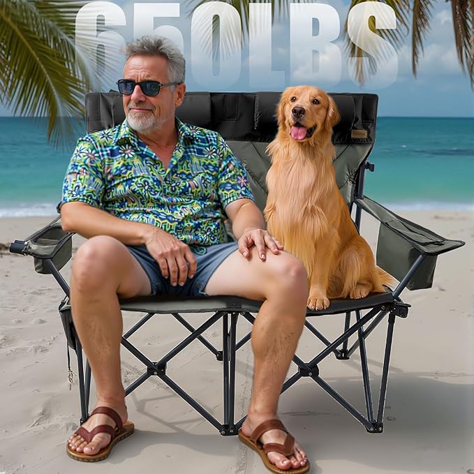 • ✨Foldable & Portable: A Folding Camping Essential✨ This foldable chair doubles as a 2 seat folding chair and folding camping essential, folding down compactly to fit in car trunks or storage. As an oversized camping chair that’s surprisingly easy to carry, it’s more than just a foldable chair—it’s a must-have for anyone needing a portable camp chair. Whether you’re packing for a trip or storing it at home, this folding design makes it a practical choice.
