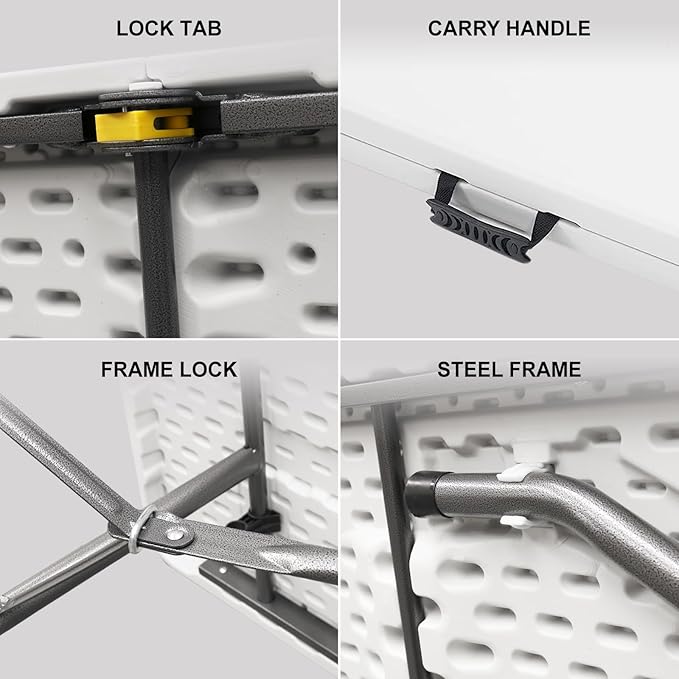 • Easy-to-operate folding table: Our 8 ft folding table can be set up and retracted in just a few simple steps, without the cumbersome steps to bother you.