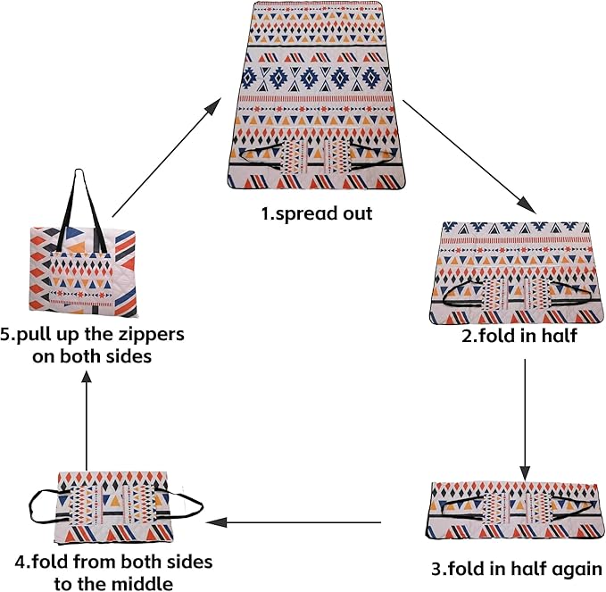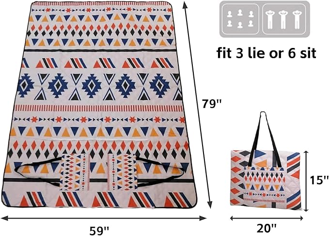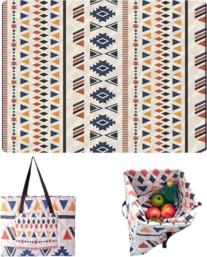 Outdoor Packable Picnic Blanket with Zipper Folds into Tote Bag with Large Storage and Shoulder Strap, Waterproof Sandproof for Lawn Beach Hiking Camping (colorful1, Large)