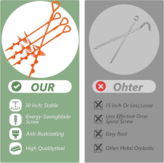 • Quality Material - Swing set anchors are made of quality steel material, 360° precise welds between helix and shaft, sturdy, firm and strong, upgraded spiral blades can save half of the efficiency and stability. Great construction, no color fading and deformation even for a long time
