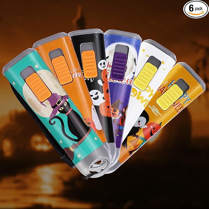 • Versatile and Convenient: Each small flashlight comes with 3 AAA batteries included. Measures 4-1/2" long and contains a wrist strap, making it compact and portable for outdoor night use. Features fun and festive Halloween-themed designs, perfect for the season.