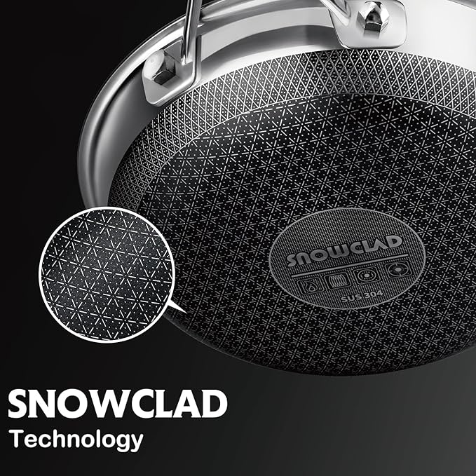 • [SNOWCLAD ENHANCED TECH]: Featuring a cutting-edge enhanced nonstick coating with a snowclad surface design, our non stick frying pans set offers longer-lasting, superior non-stick performance. No more worries about peeling or flaking—this set offers exceptional durability and is designed to withstand the use of metal utensils. Additionally, our clad surface is 50% larger than that of typical hex pans.