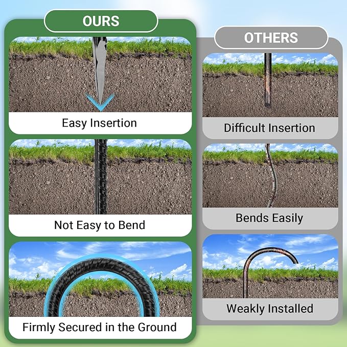 • Versatile Outdoor Use: These ground stakes are ideal for various outdoor activities, including gardening, camping, and yard work. Whether used as heavy-duty trampoline stakes, swing ground stakes, soccer goal stakes, chain-link fence stakes, or for securing camping tents, they provide reliable support.