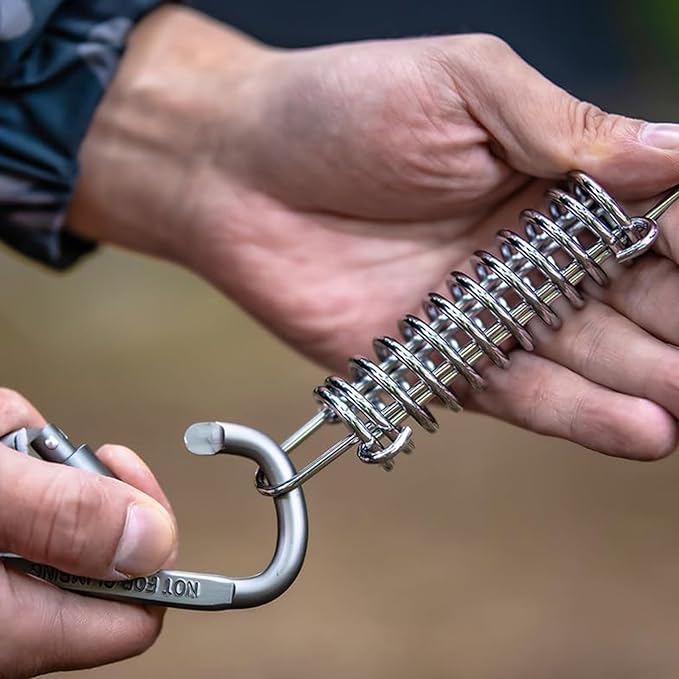 • ⛺⛺【Easy to Install】--Just thread the rope or chain through one end of the spring, and you can complete the installation without using any tools. The tent spring buckle consists of a spring and two U-shaped hooks, which are detachable and easy to carry.