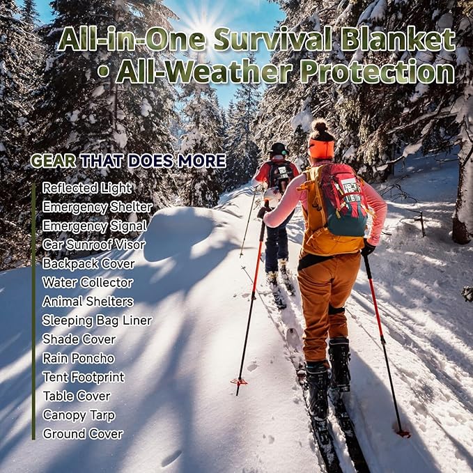 • VERSATILE SURVIVAL SUPPLIES: Serves as a shelter, poncho, shade, ground cover, or emergency signal, enhanced by its oversized, reusable tear-resistant build. Suitable for marathons, camping, hiking, earthquake disasters, or first aid, this durable solution ensures long-term safety in unpredictable situations