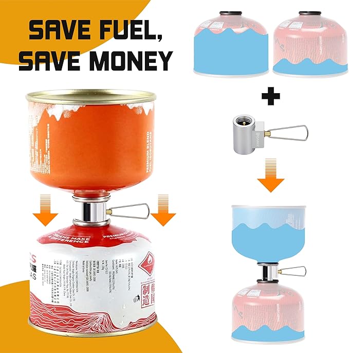 • 【Extra Refill Feature】— Some adapters can safely transfer gas from one canister to another, helping you combine leftover fuel. Great for saving gas on camping trips or at home. Always follow safety instructions. Gas canisters not included.