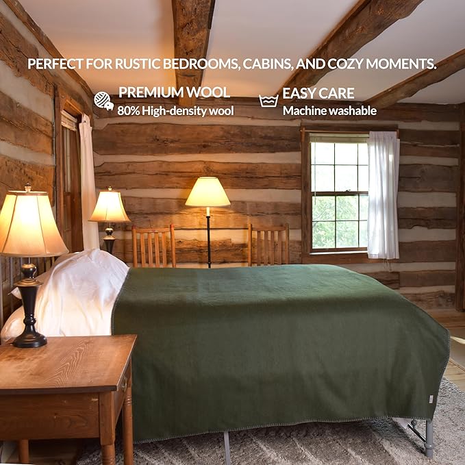 Military Style Wool Blanket – Cushioned, Breathable, Durable, Warm & Washable – Double-Stitched Border– Great for Camping, Outdoor, First Aid, Travel, Car, Fire-Resistant – 64"x90" 4.5lb (Olive Green)