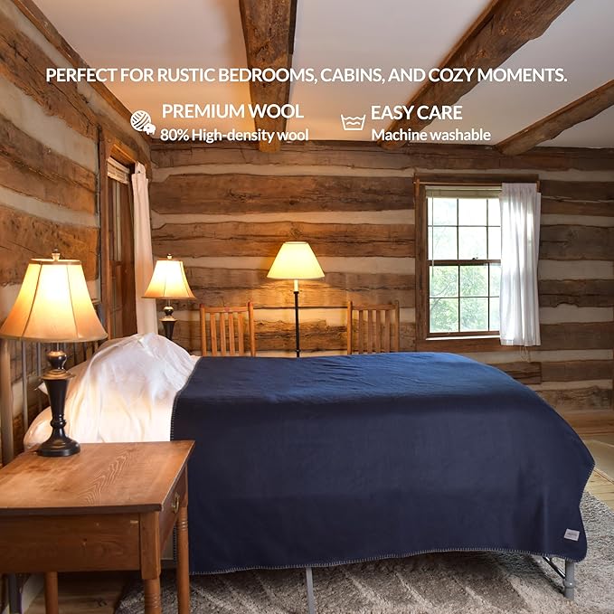 Military Style Wool Blanket – Cushioned, Breathable, Durable, Warm & Washable – Double-Stitched Border–Great for Camping, Outdoor, First Aid, Travel, Car–Fire-Resistant – 64"x90" 4.5 lb (Navy Blue)