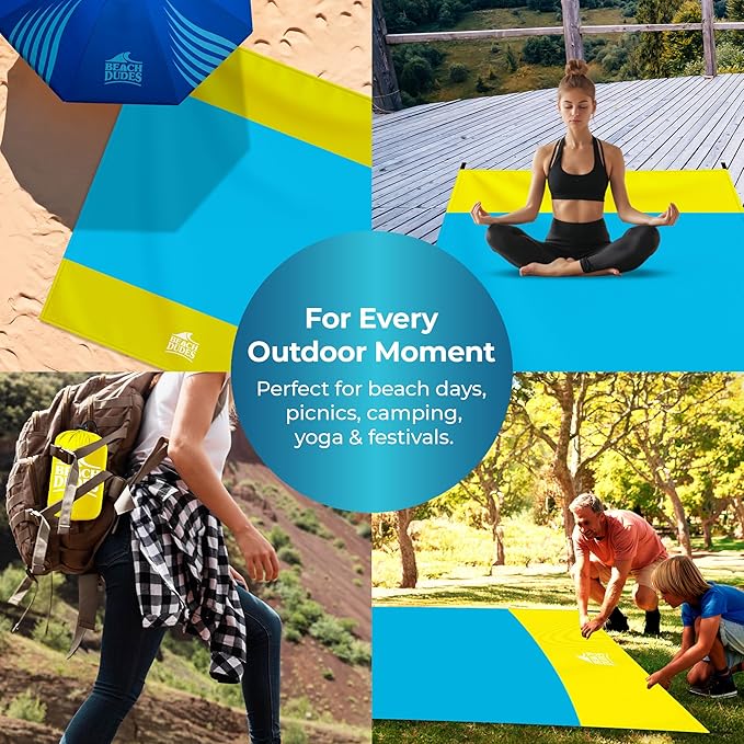 • THE BEACH DUDES QUALITY PROMISE This is not a disposable, one-season blanket. It’s a piece of quality gear built to last. We use premium, heat-resistant ripstop nylon with triple-stitched seams for exceptional durability against rocks and roots. The colorfast fabric won't fade in the sun, ensuring your blanket looks great season after season. Choose a product designed with signature style and unwavering reliability.