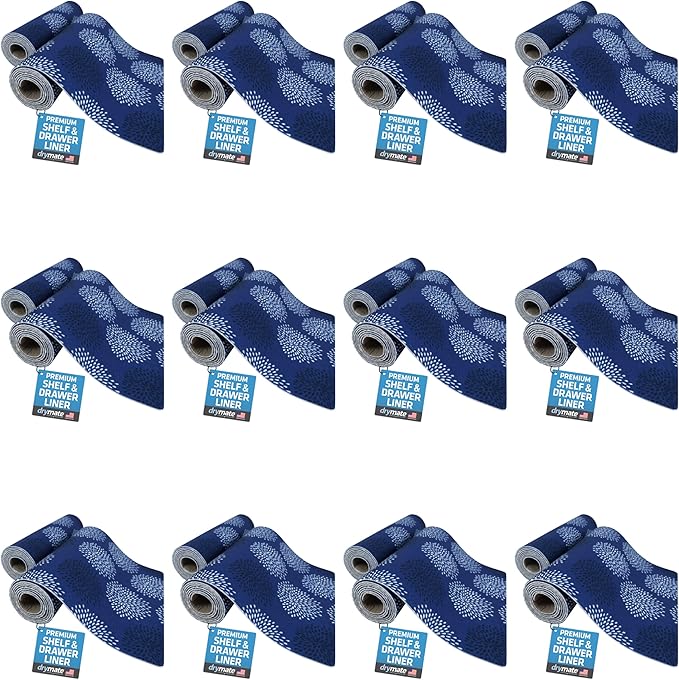 Drymate Premium Luxury Shelf & Drawer Liner, Thick Cushioned Fabric, Non-Adhesive, Absorbent, Waterproof, Slip-Resistant, Liners for Kitchen Cabinets, Cupboards (USA Made)(12”x59”)(24-Pack)(GoodBlue)