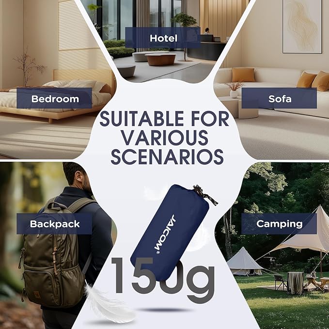 • WIDE RANGE OF USES - The JAICOM Sleeping Bag Liner is the perfect companion for backpacking. Ultra-light and small in size, it won't take up much space in your backpack and won't add weight. You can use it in hotels to isolate yourself from the outside world if you don't want to touch the sheets, in outdoor camping it not only protects your sleeping bag, but also fits over your sleeping pad, and it doubles as a sofa cover in your living room, making cleaning a breeze