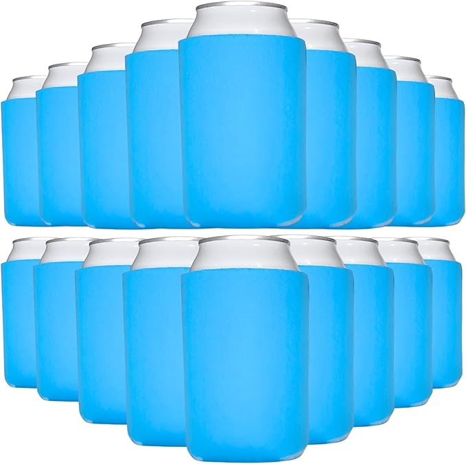 TahoeBay Blank Beer Can Cooler Sleeves (25-Pack) Bulk Sublimation Blanks for Vinyl Plain Soft Foam Can Sleeves Coolers for Soda Cans & Bottles Black, White, Assorted Solid Color (Neon Blue)