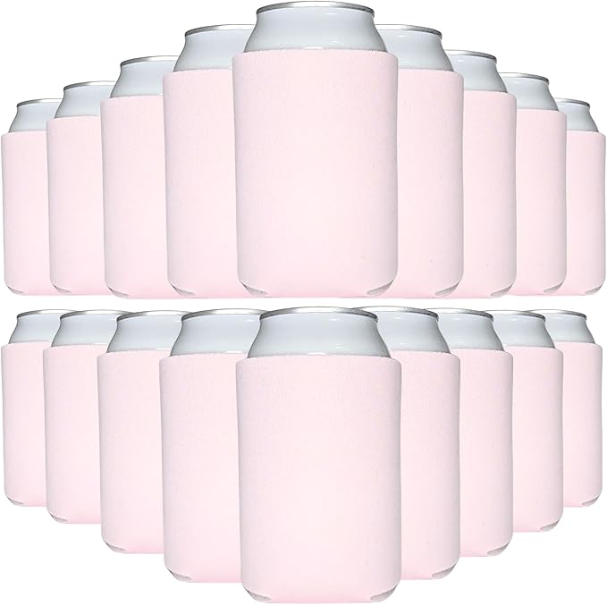 TahoeBay Blank Beer Can Cooler Sleeves (25-Pack) Bulk Sublimation Blanks for Vinyl Plain Soft Foam Can Sleeves Coolers for Soda Cans & Bottles Black, White, Assorted Solid Color (Blush)