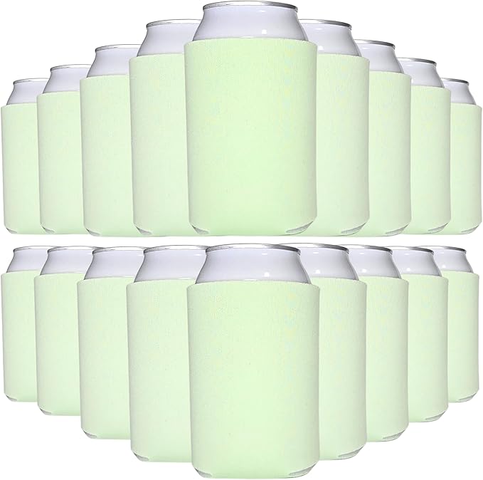 • Includes Twenty-Five (25) collapsible foam can cooler blanks. No brand logos or tags. Make your own design with heat transfer vinyl, infusible ink, sublimation, screen printing, direct to film transfer, and fabric markers. Fabric details - scuba knit polyester fabric on premium 4mm thick poly foam insulator. The collapsible design makes them perfect for a heat press or crafting iron. See the video for heat transfer, time, and pressure settings.